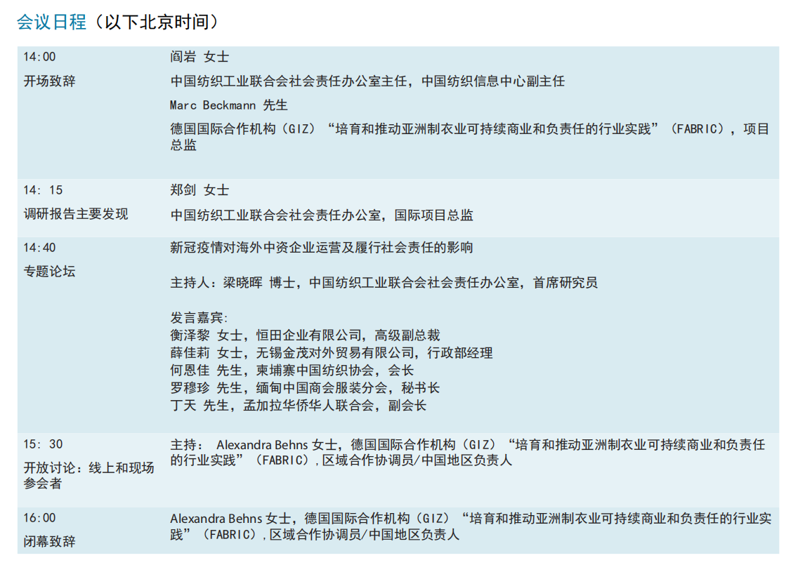 《“新冠”疫情對海外中資紡織服裝企業(yè)運(yùn)營及社會責(zé)任影響 》調(diào)研報告發(fā)布會即將召開