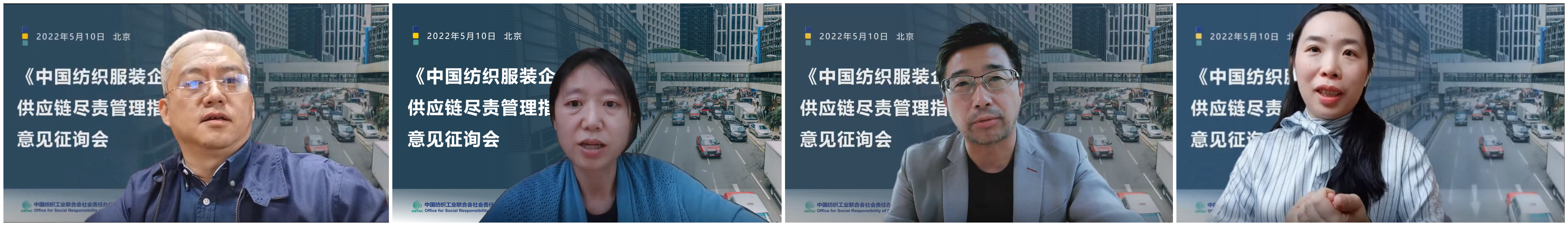 2022年5月10日下午,由中國紡織工業(yè)聯(lián)合會社會責(zé)任辦公室主辦的《中國紡織服裝企業(yè)社會與環(huán)境盡責(zé)管理指南(征求意見稿)》(暫定名,下稱“《盡責(zé)管理指南》”或“指南”)意見征詢會在線上成功舉辦。來自南開大學(xué)、北京工商大學(xué)、聯(lián)合國開發(fā)計劃署(UNDP)、聯(lián)合國兒童基金會(UNICEF)、經(jīng)濟(jì)合作與發(fā)展組織(OECD)、德國國際合作機(jī)構(gòu)(GIZ)等十五家機(jī)構(gòu)的二十余位專家參加了本次會議,就盡責(zé)管理指南的改進(jìn)與實(shí)施進(jìn)行了全面、深入的討論。