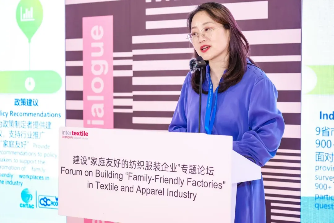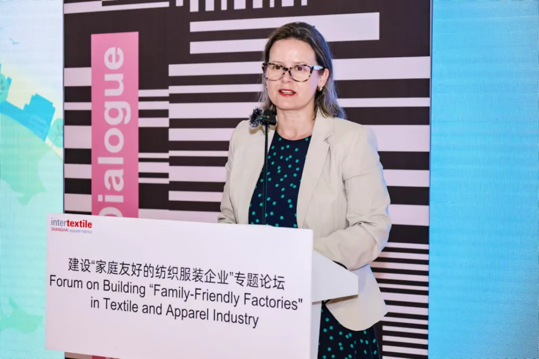 聯(lián)合國兒童基金會駐華辦事處合作與創(chuàng)新處處長艾德芙(Derval Usher)表示,自2019年起,中國紡聯(lián)與聯(lián)合國兒童基金會緊密合作,致力于推動家庭友好型工作場所建設,并于2022年簽訂正式工作計劃。此計劃在中國紡聯(lián)會員企業(yè)供應鏈中試點,涵蓋工廠實踐、行業(yè)指導及宣傳倡導,旨在利用商業(yè)力量助力父母平衡工作與育兒。她在發(fā)言中還特別強調了兒童早期發(fā)展的重要性,倡導性別平等及尊重工人權利,旨在通過多方合作,確保家庭友好政策的可持續(xù)實施,特別關注流動就業(yè)人員及有殘障兒童家庭的需求。她期待通過分享經驗,推動家庭友好政策的政策倡導、推廣。