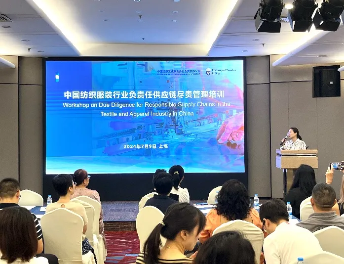 2024年7月9日,中國紡織工業聯合會社會責任辦公室與瑞典駐華大使館在上海合作舉辦紡織服裝行業供應鏈盡責管理培訓研討會。