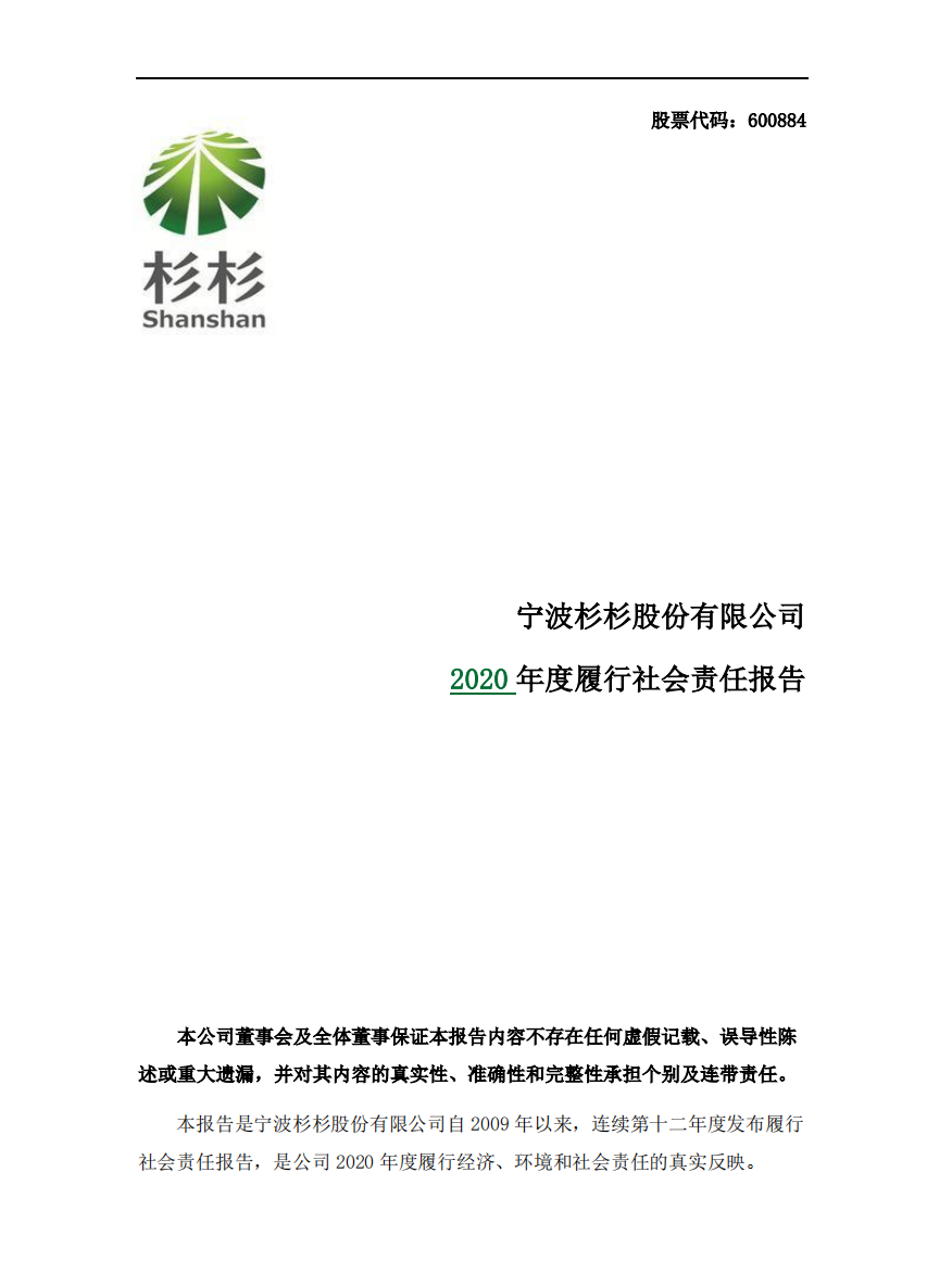 寧波杉杉股份有限公司2020年度履行社會(huì)責(zé)任報(bào)告